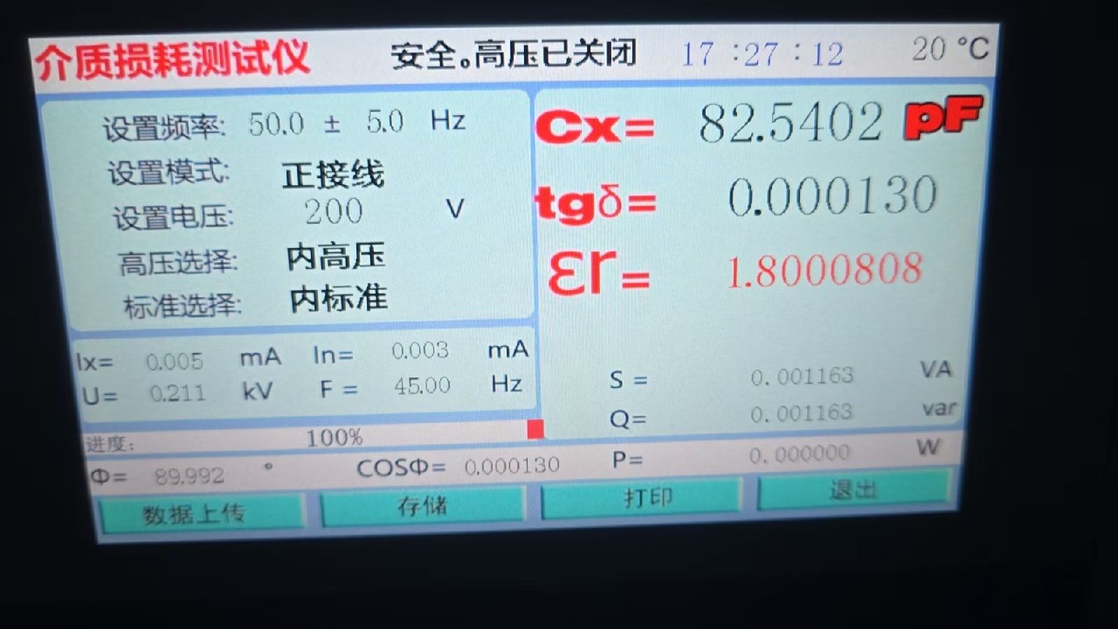 - *介质损耗tgδ分辨率:0.000001,电容、电感、电阻三种试品自动识别。